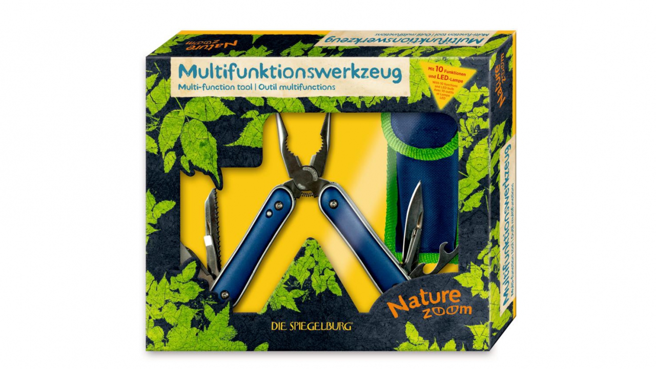 Alle wichtigen Werkzeuge für junge Entdecker, vereint in einem Werkzeug von Nature Zoom mit zehn Funktionen. Dank der praktischen Tasche mit Gürtelschlaufe ist das Werkzeug immer dabei.